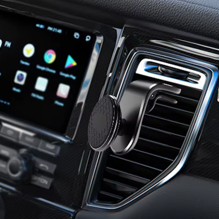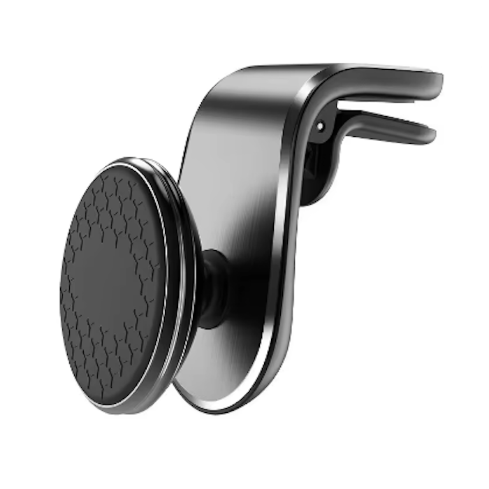 Een zwarte, universele mobiele telefoon magneethouder waarop je een mobiele telefoon kunt bevestigen. Hierdoor heb je een vaste plek voor je mobiele telefoon in je auto. Daarnaast kan de magneethouder draaien, waardoor je de smartphone kan kantelen. Dit is handig voor bijvoorbeeld navigatie. De magneethouder is te bevestigen door deze op het dashboard bijvoorbeeld in luchtrooster met de clip. Kortom, simpel en snel te monteren.